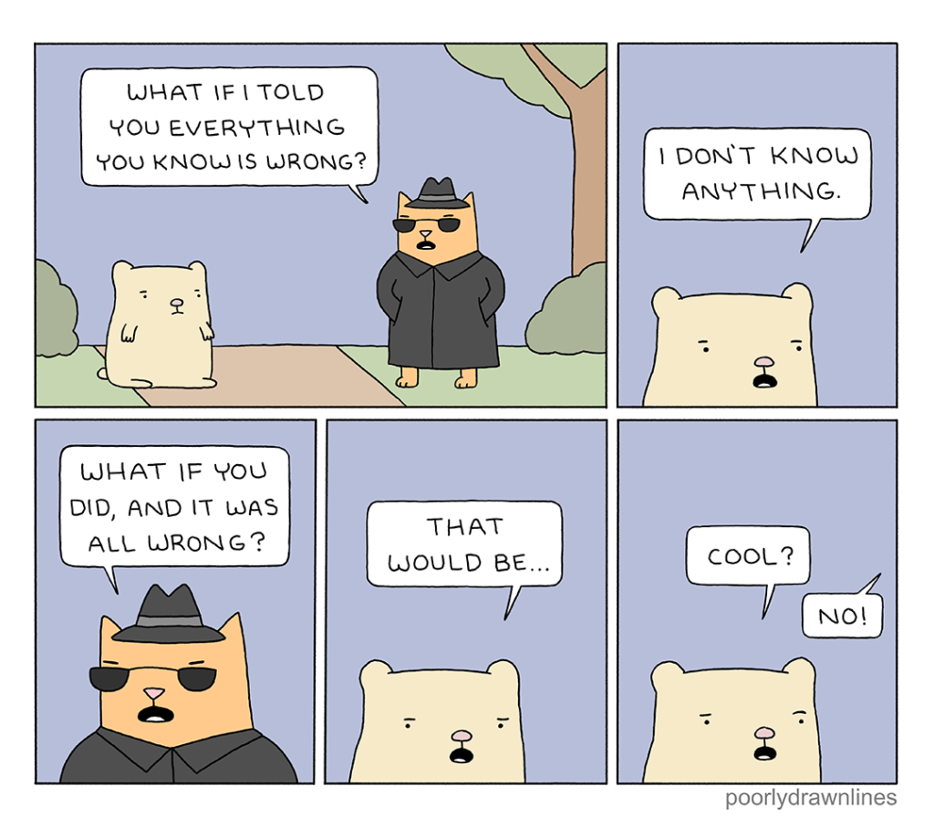 Reza Farazmand’s Poorly Drawn Lines regularly makes me laugh out loud.1 There are some recurring characters, but no plot to speak of. There aren’t punch lines so much as perverse situations that escalate into absurdity.