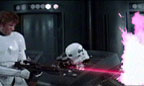clawing out one of Han's eyes or grabbing his blaster and squeezing off a few shots--