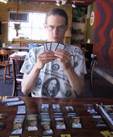 We spent several hours at the Pine Knot Coffee House drinking cafe au lait and playing games. In this picture, I'm pondering my move in a game of Caesar and Cleopatra-- I always get to play Caesar.