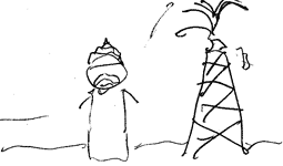 After Oz went to bed, we played some ordinary Pictionary. Ron and I teamed against Cristyn and Theresa; we lost the first game, but rallied in a second. This was my picture for the vexing prompt Middle East.