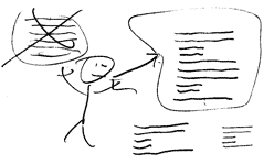 For this one, I drew the figure on the left and then the one on the right. Ron got it immediately. The eyes cinched it, he says.