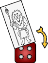 I was working before the Renaissance of paper miniatures and the renewed availability of Cardboard Hero bases, so I devised a way for the figures to stand up using a standard six-sided die. Each figure has a square base and goes around a die on the table. When the game is over, the die comes out and the figure can be stored flat.